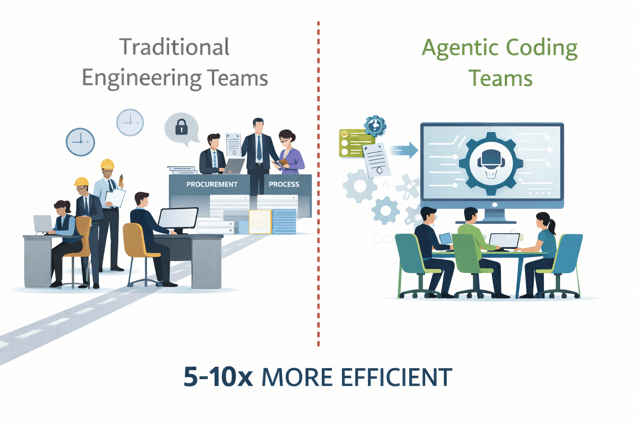 Agentic-native companies do not just work a little faster. When designed correctly, they can work 5 to 10 times more efficiently than traditional engineering teams - not because the people involved are better, but because the system is designed differently in the first place.