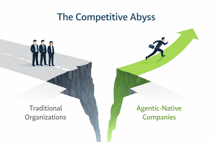 That's why this is not a gap you can plan to close up later. It's an abyss. By the time traditional organizations begin a serious change agenda, agentic - native competitors are operating on a different curve.